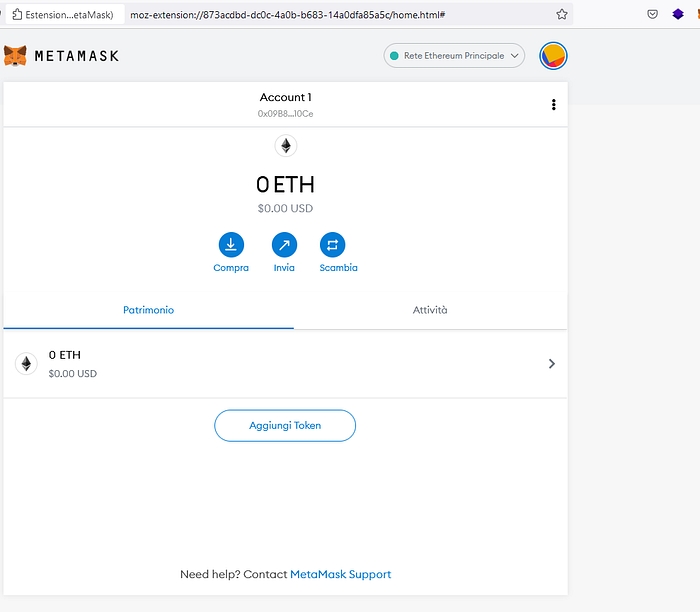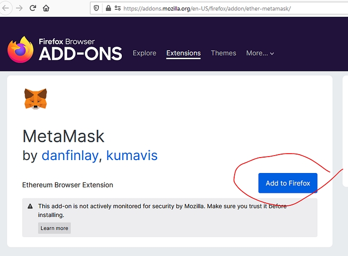 Installing the Metamask browser extention