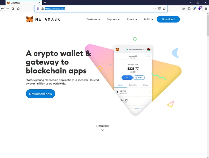 Install the Metamask browser extention wallet on your browser, by clicking on “Download now”;